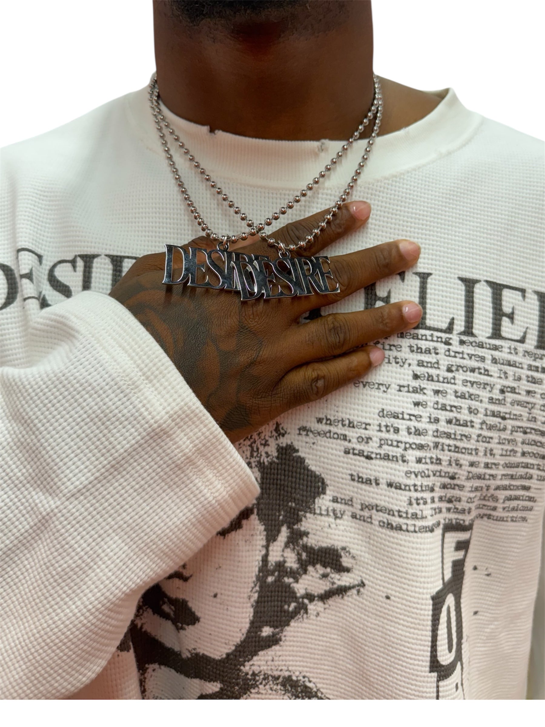 Elevate your everyday style with the bold simplicity of the Desire Pendant Chain. Crafted from high quality stainless steel, this piece is designed to last resisting tarnish, rust, and fading. The sleek “Desire” pendant serves as a symbol of ambition, passion, and relentless drive, making it more than just an accessory it’s a mindset.